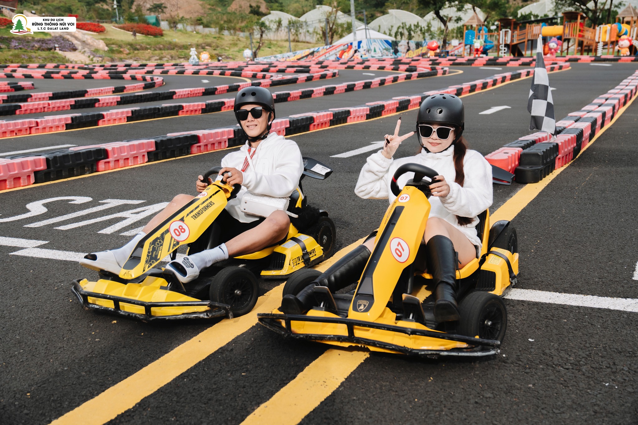 Trước khi chinh phục đường đua mô hình Go Kart, bạn sẽ đội nón bảo hộ do Khu du lịch cung cấp và được nhân viên dẫn cách điều khiển xe đua mô hình.