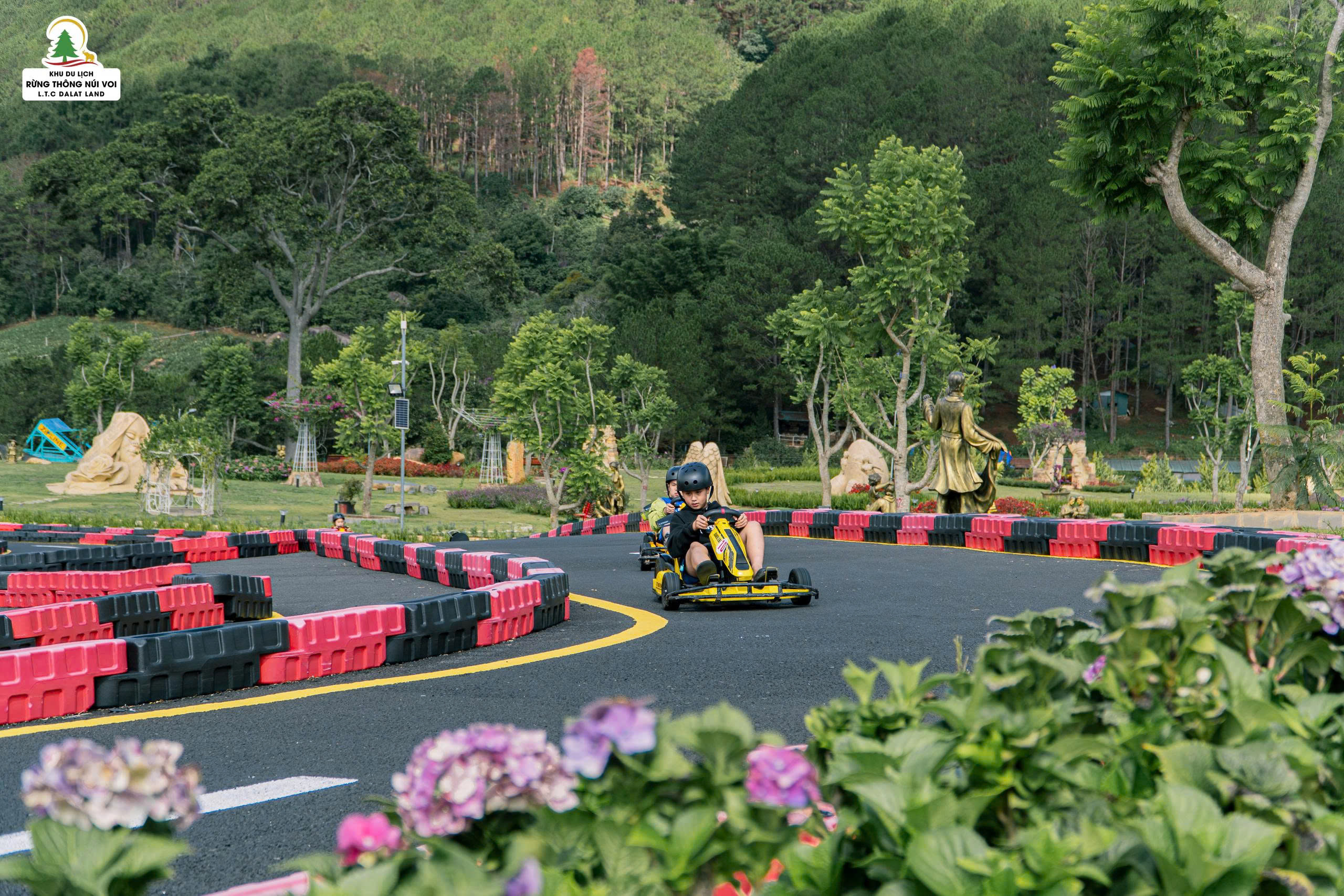 Cảm giác phấn khích khi chinh phục đường đua mô hình Go Kart có tổng chiều dài 900m. Tại Khu du lịch Rừng Thông Núi Voi, bạn sẽ vượt qua những thử thách trên đường đua có độ dốc lớn, nhiều khúc cua gấp.